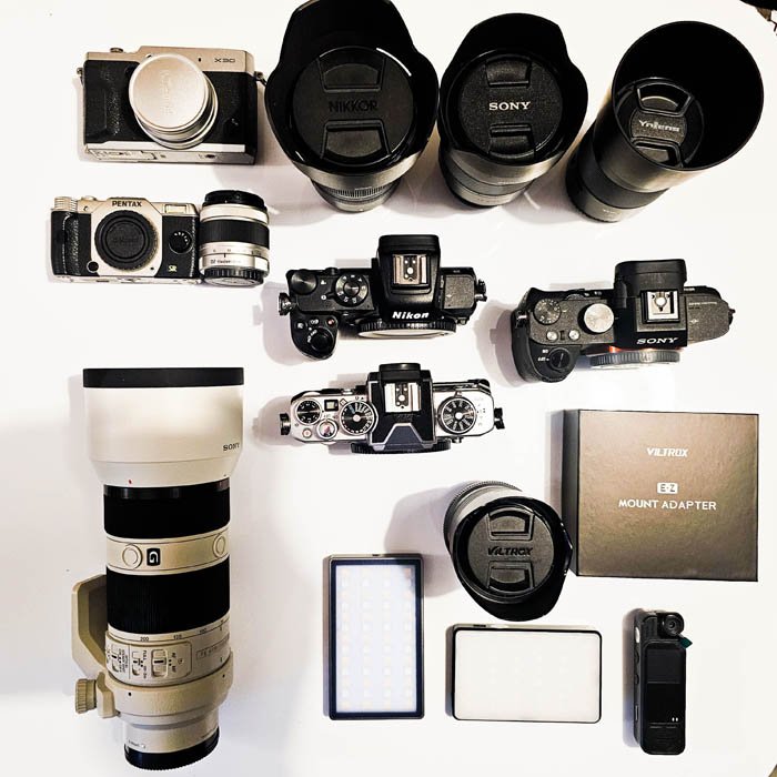 The next assortment of cameras etc is the smaller Pentax Q7 with 02 standard lens then there is the Nikon Z50, Sony A7 MK2.